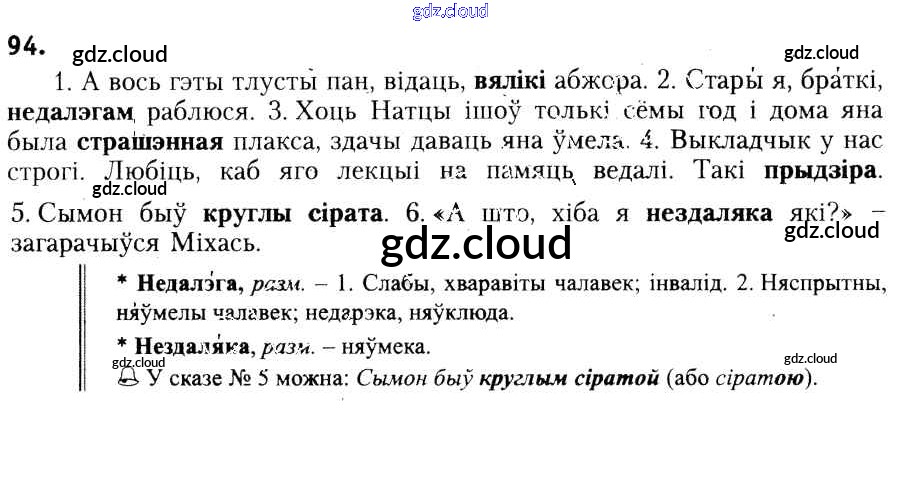 Ответ на задание 94 Учебник Белорусский язык за 6 (шестой) класс Красней, Лаурель, Рачэўскі 2015