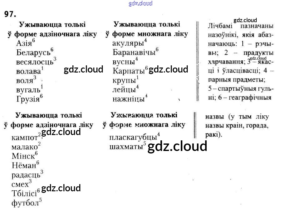 Ответ на задание 97 Учебник Белорусский язык за 6 (шестой) класс Красней, Лаурель, Рачэўскі 2015