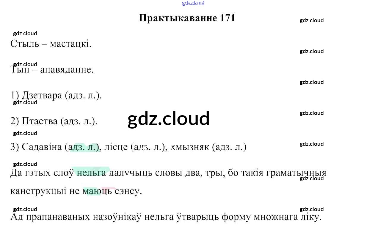 Ответ на задание 171 Учебник Белорусский язык за 6 (шестой) класс Валочка, Зелянко, Мартынкевіч, Якуба, Бажкова 2020