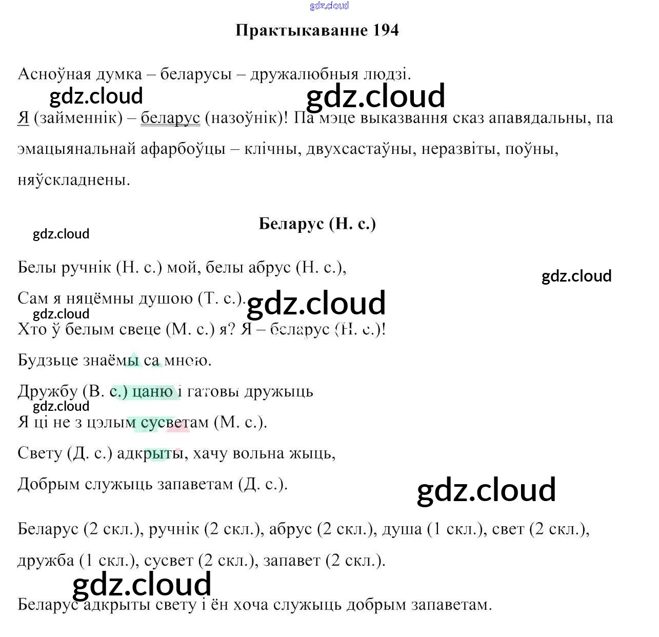 Ответ на задание 194 Учебник Белорусский язык за 6 (шестой) класс Валочка, Зелянко, Мартынкевіч, Якуба, Бажкова 2020