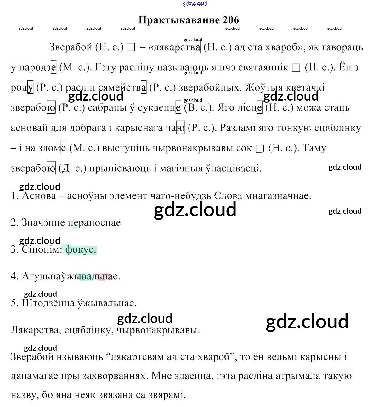 Ответ на задание 206 Учебник Белорусский язык за 6 (шестой) класс Валочка, Зелянко, Мартынкевіч, Якуба, Бажкова 2020