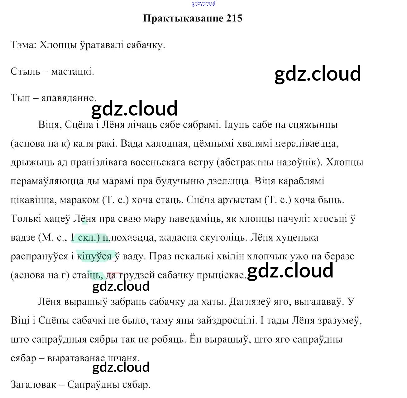 Ответ на задание 215 Учебник Белорусский язык за 6 (шестой) класс Валочка, Зелянко, Мартынкевіч, Якуба, Бажкова 2020