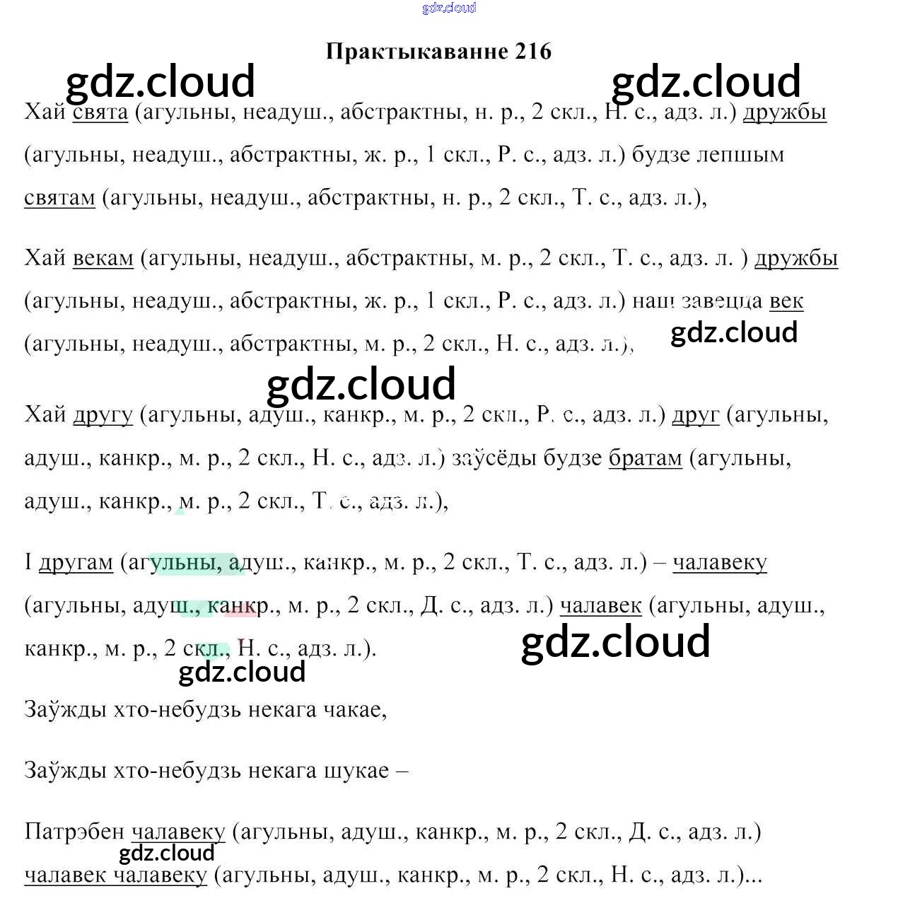 Ответ на задание 216 Учебник Белорусский язык за 6 (шестой) класс Валочка, Зелянко, Мартынкевіч, Якуба, Бажкова 2020