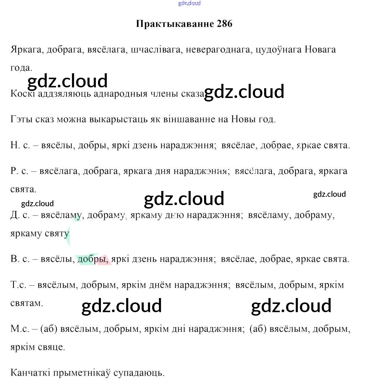 Ответ на задание 286 Учебник Белорусский язык за 6 (шестой) класс Валочка, Зелянко, Мартынкевіч, Якуба, Бажкова 2020