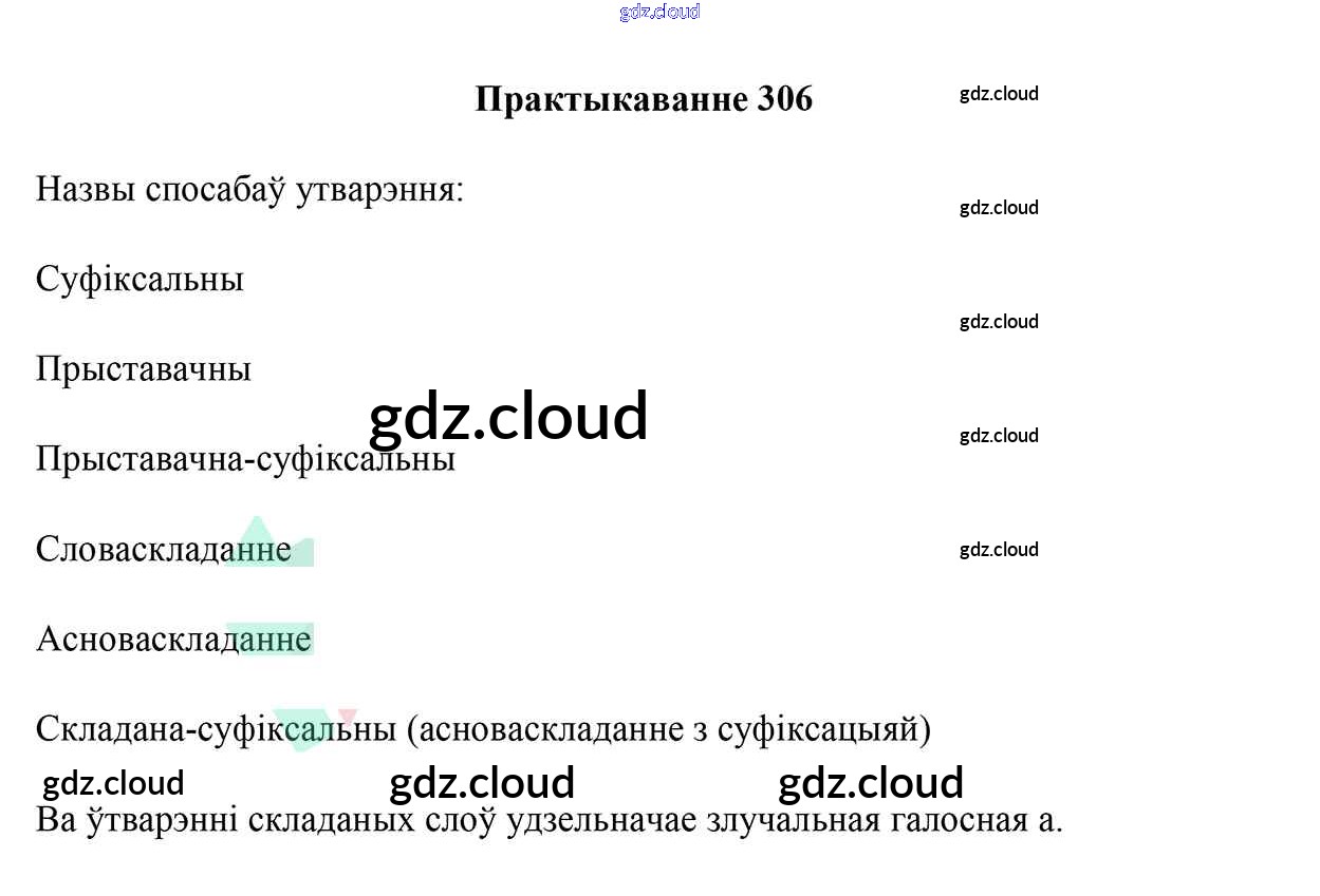 Ответ на задание 306 Учебник Белорусский язык за 6 (шестой) класс Валочка, Зелянко, Мартынкевіч, Якуба, Бажкова 2020