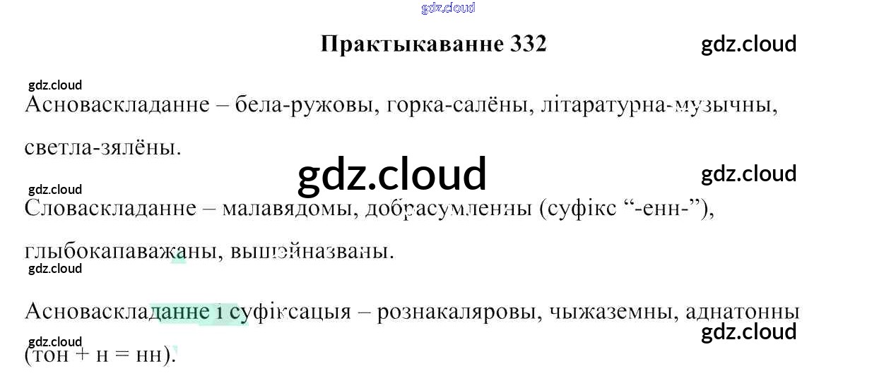 Ответ на задание 332 Учебник Белорусский язык за 6 (шестой) класс Валочка, Зелянко, Мартынкевіч, Якуба, Бажкова 2020