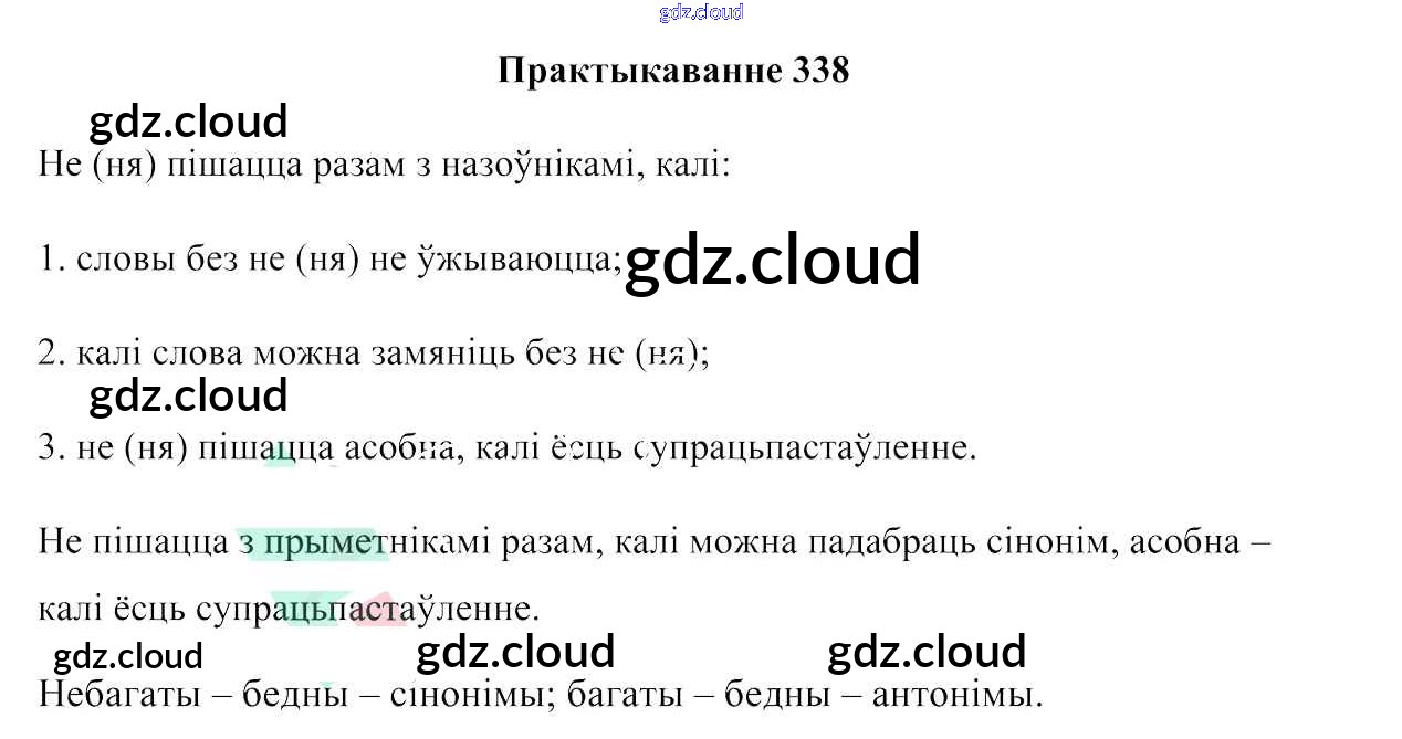 Ответ на задание 338 Учебник Белорусский язык за 6 (шестой) класс Валочка, Зелянко, Мартынкевіч, Якуба, Бажкова 2020