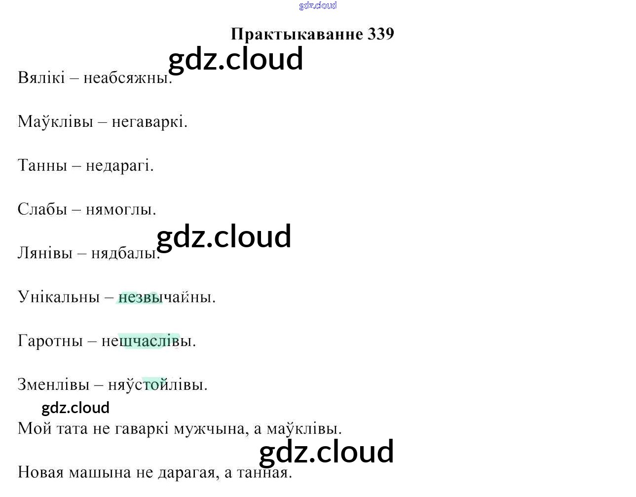 Ответ на задание 339 Учебник Белорусский язык за 6 (шестой) класс Валочка, Зелянко, Мартынкевіч, Якуба, Бажкова 2020