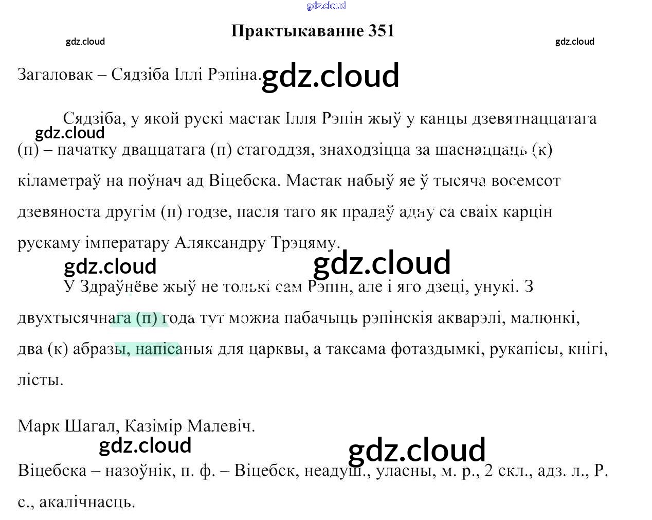 Ответ на задание 351 Учебник Белорусский язык за 6 (шестой) класс Валочка, Зелянко, Мартынкевіч, Якуба, Бажкова 2020