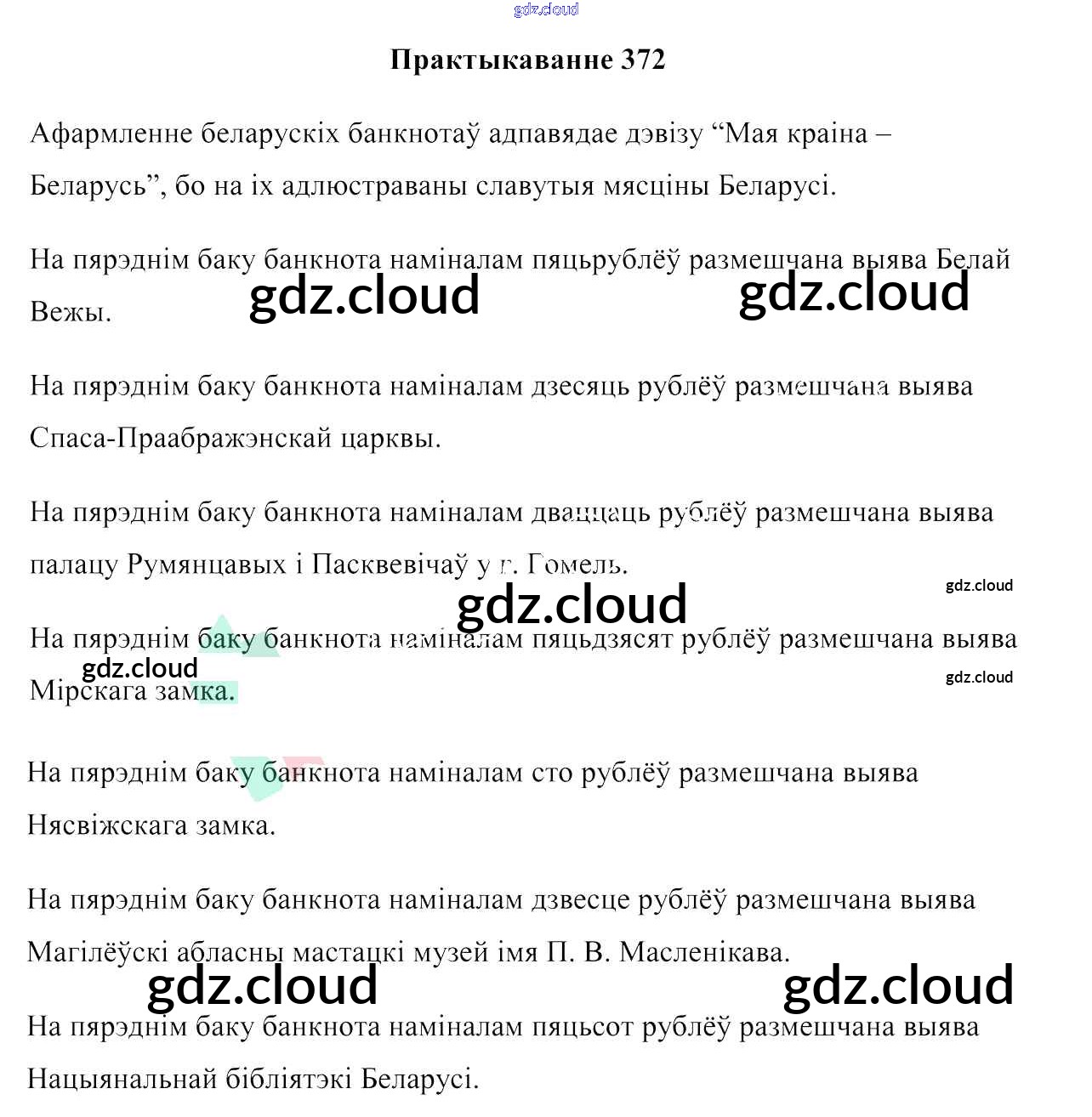 Ответ на задание 372 Учебник Белорусский язык за 6 (шестой) класс Валочка, Зелянко, Мартынкевіч, Якуба, Бажкова 2020
