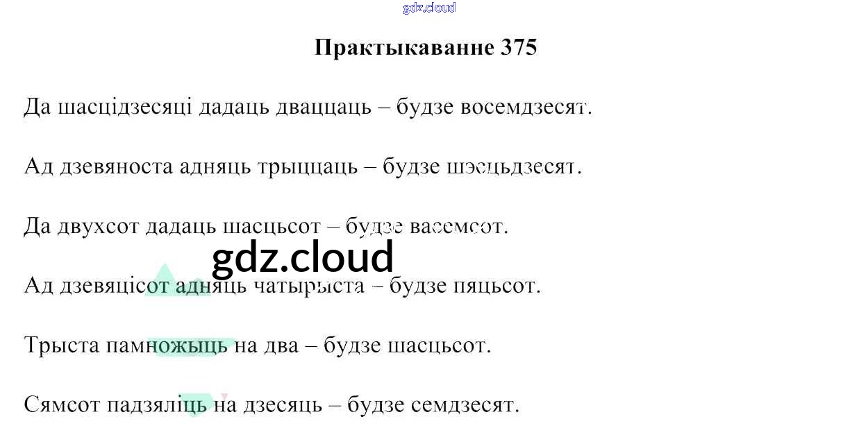 Ответ на задание 375 Учебник Белорусский язык за 6 (шестой) класс Валочка, Зелянко, Мартынкевіч, Якуба, Бажкова 2020
