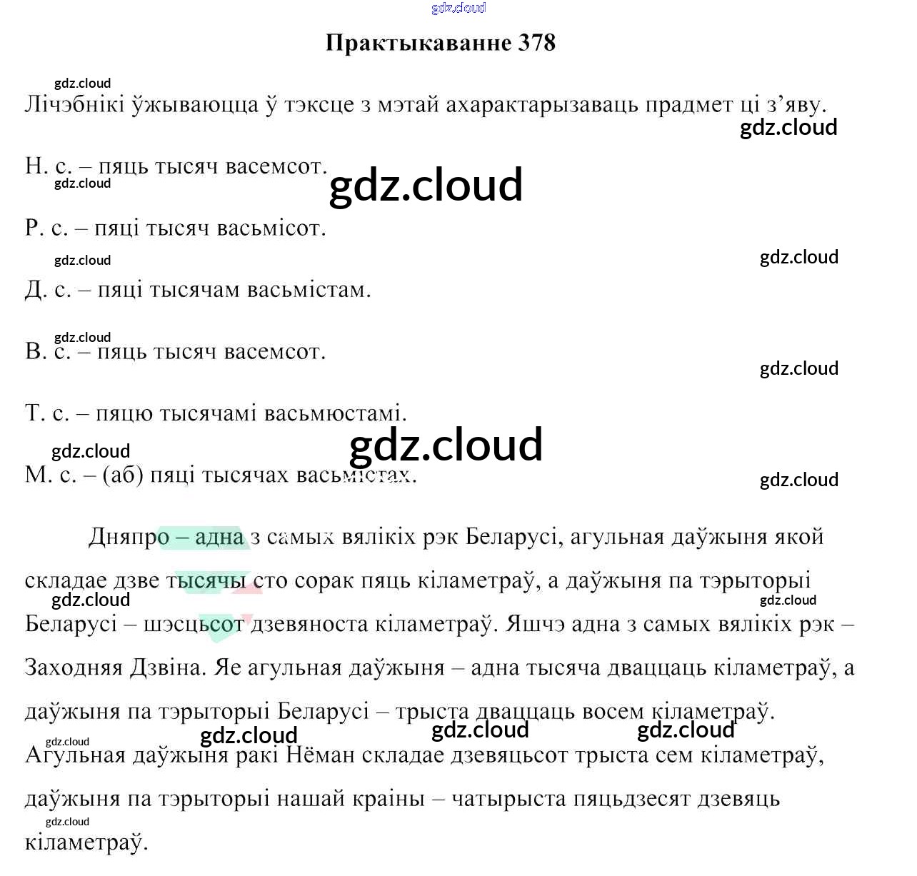 Ответ на задание 378 Учебник Белорусский язык за 6 (шестой) класс Валочка, Зелянко, Мартынкевіч, Якуба, Бажкова 2020