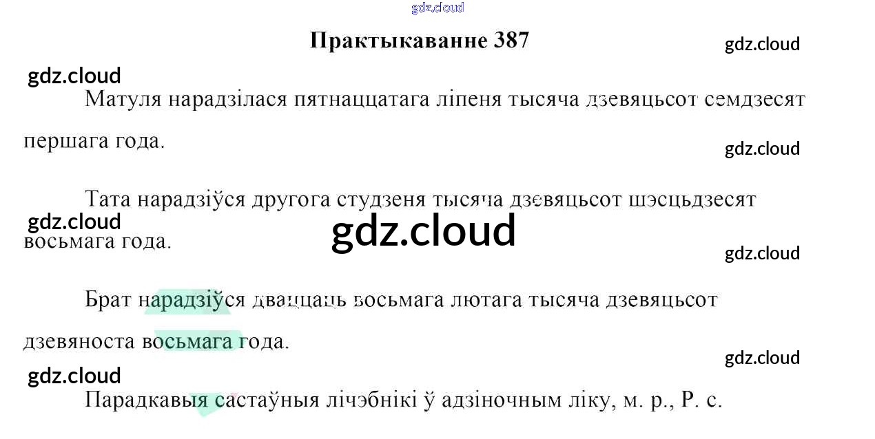 Ответ на задание 387 Учебник Белорусский язык за 6 (шестой) класс Валочка, Зелянко, Мартынкевіч, Якуба, Бажкова 2020