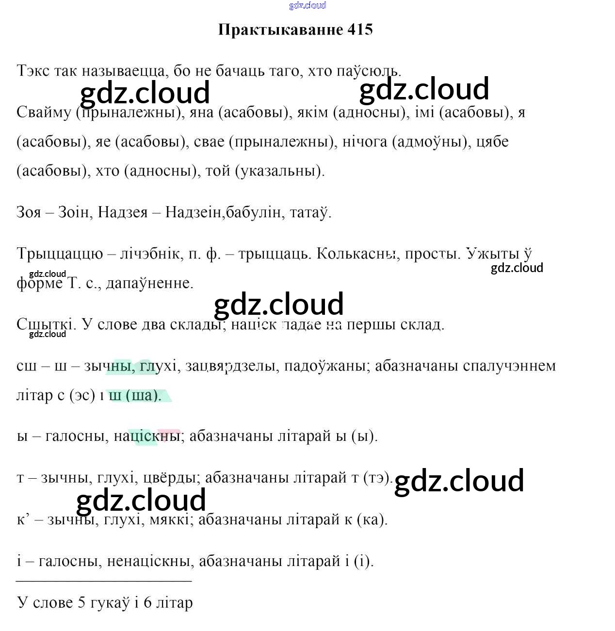 Ответ на задание 415 Учебник Белорусский язык за 6 (шестой) класс Валочка, Зелянко, Мартынкевіч, Якуба, Бажкова 2020