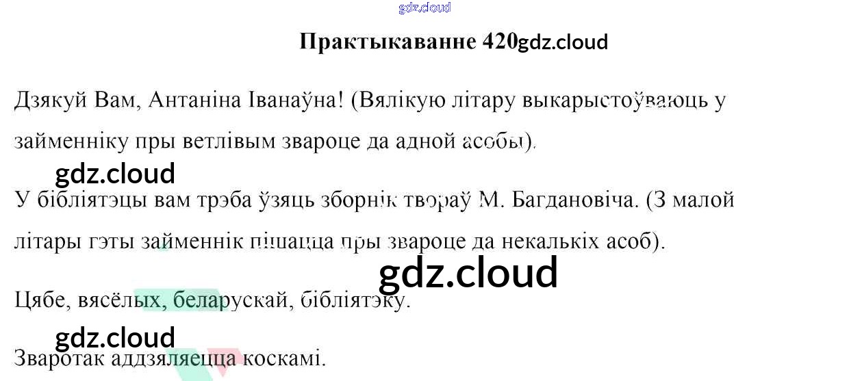 Ответ на задание 420 Учебник Белорусский язык за 6 (шестой) класс Валочка, Зелянко, Мартынкевіч, Якуба, Бажкова 2020