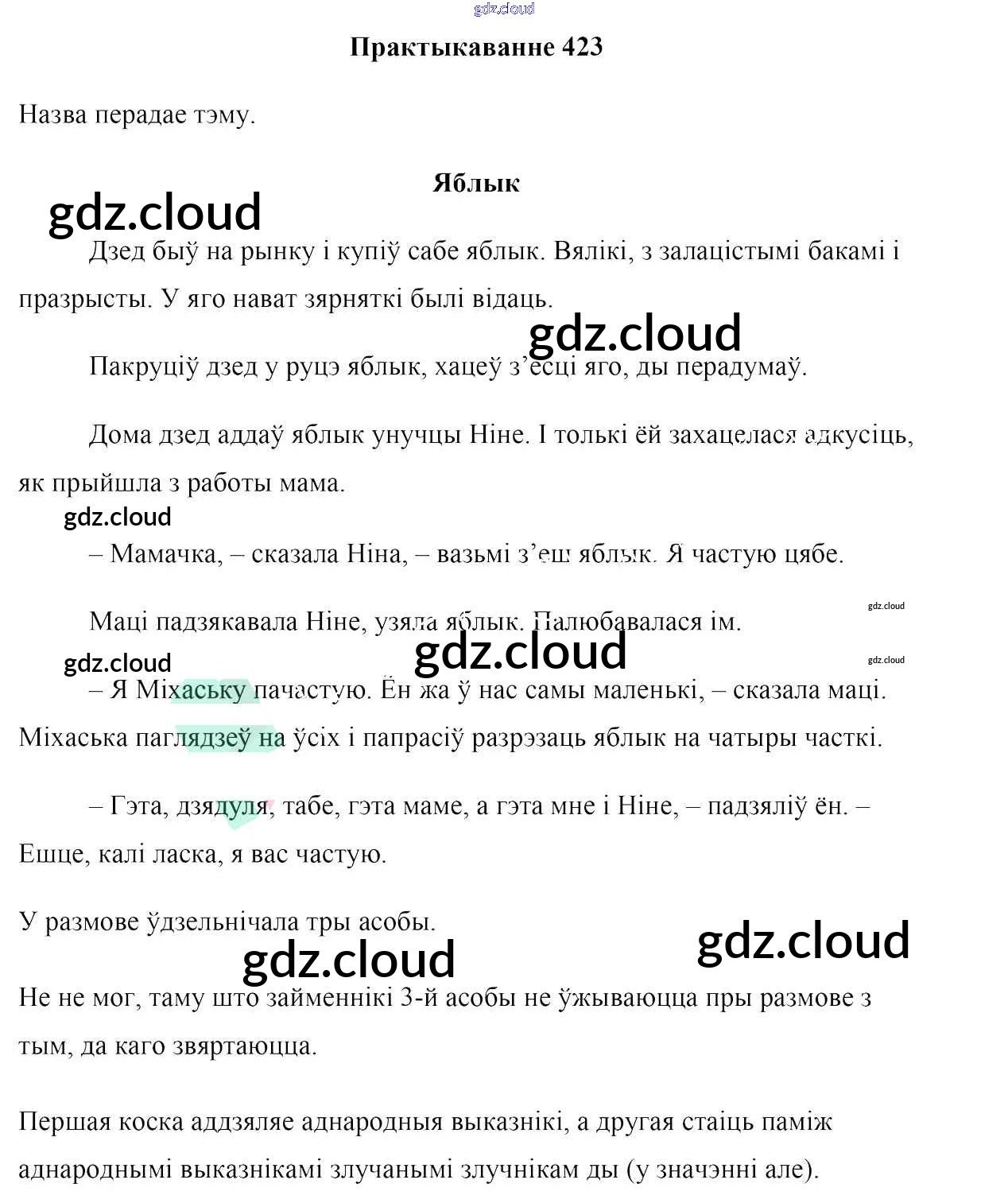 Ответ на задание 423 Учебник Белорусский язык за 6 (шестой) класс Валочка, Зелянко, Мартынкевіч, Якуба, Бажкова 2020