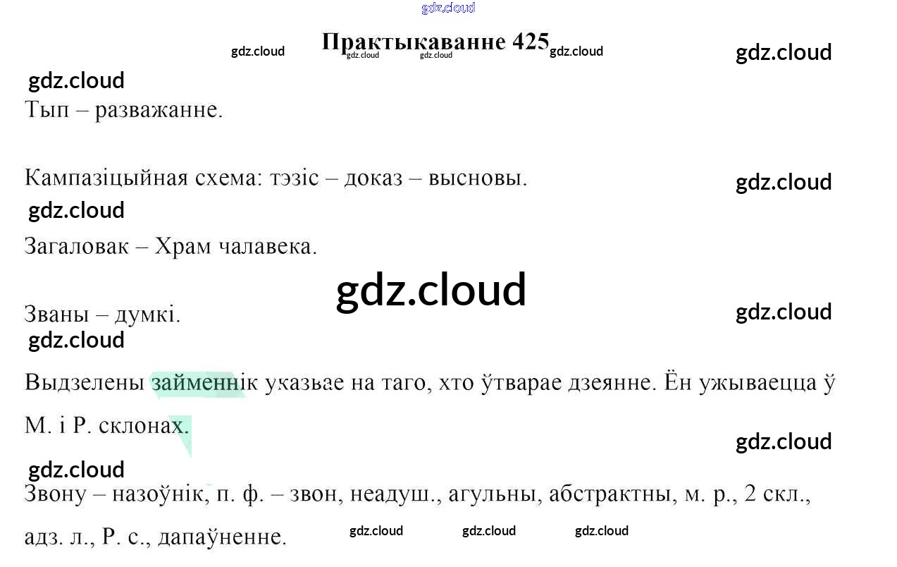 Ответ на задание 425 Учебник Белорусский язык за 6 (шестой) класс Валочка, Зелянко, Мартынкевіч, Якуба, Бажкова 2020