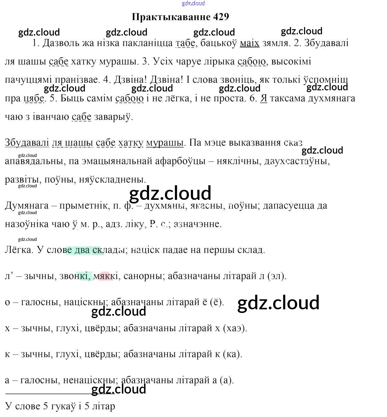 Ответ на задание 429 Учебник Белорусский язык за 6 (шестой) класс Валочка, Зелянко, Мартынкевіч, Якуба, Бажкова 2020