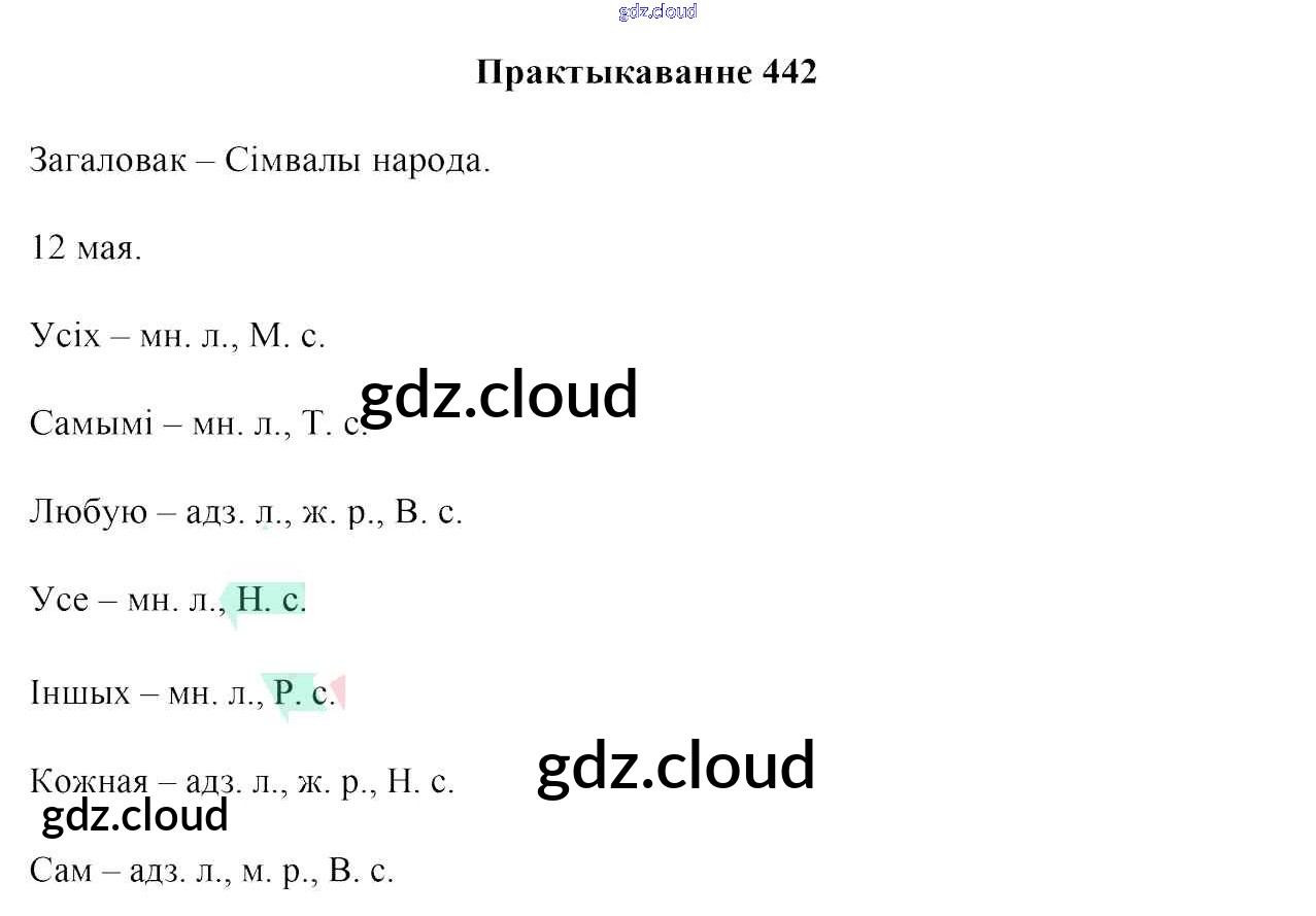 Ответ на задание 442 Учебник Белорусский язык за 6 (шестой) класс Валочка, Зелянко, Мартынкевіч, Якуба, Бажкова 2020