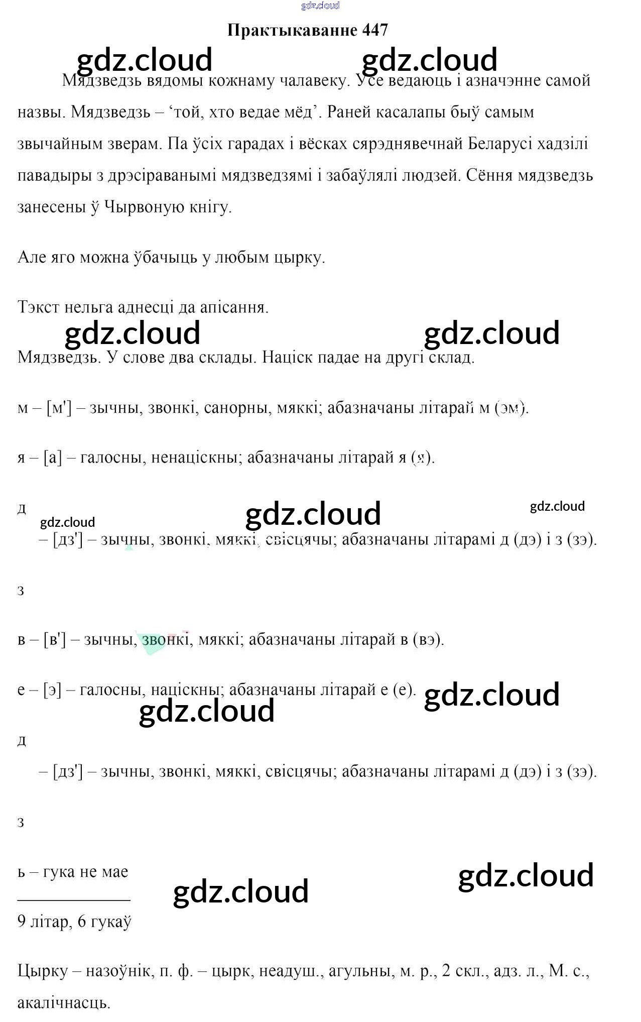 Ответ на задание 447 Учебник Белорусский язык за 6 (шестой) класс Валочка, Зелянко, Мартынкевіч, Якуба, Бажкова 2020