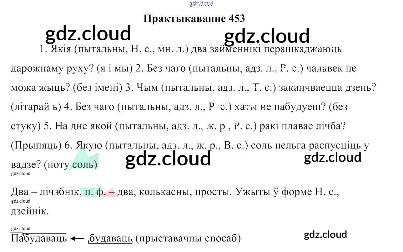 Ответ на задание 453 Учебник Белорусский язык за 6 (шестой) класс Валочка, Зелянко, Мартынкевіч, Якуба, Бажкова 2020