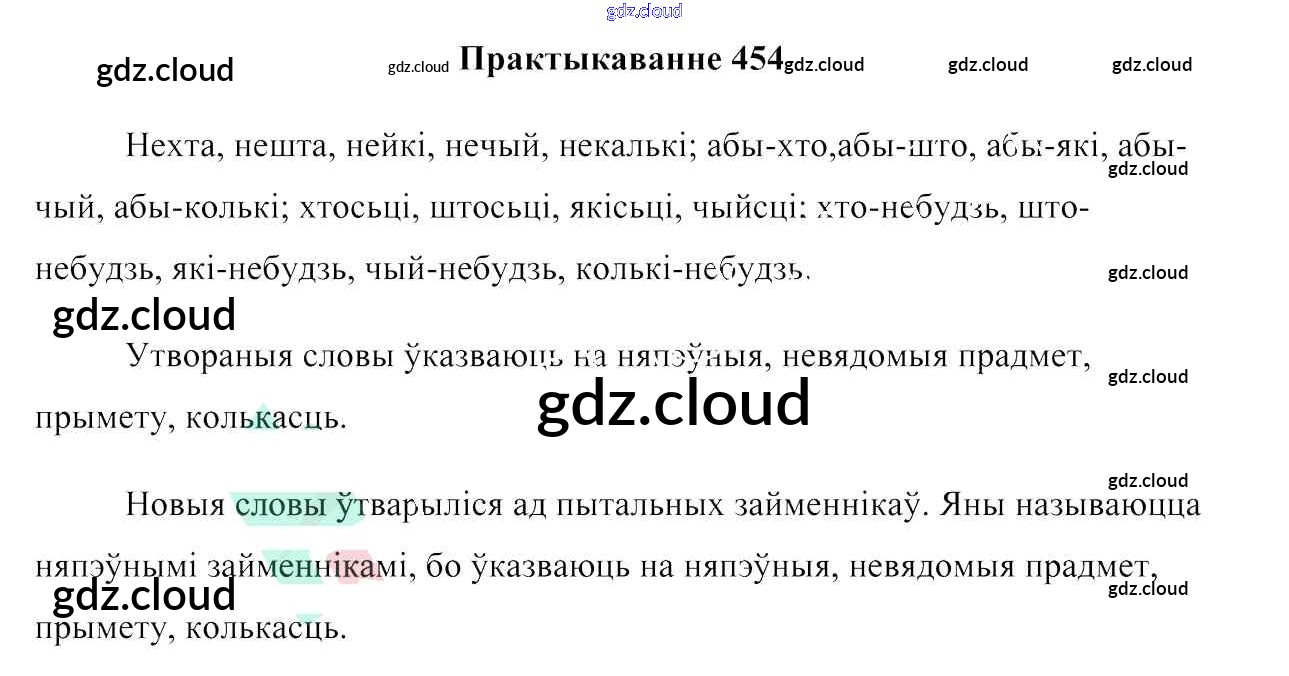 Ответ на задание 454 Учебник Белорусский язык за 6 (шестой) класс Валочка, Зелянко, Мартынкевіч, Якуба, Бажкова 2020