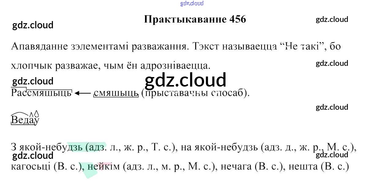 Ответ на задание 456 Учебник Белорусский язык за 6 (шестой) класс Валочка, Зелянко, Мартынкевіч, Якуба, Бажкова 2020