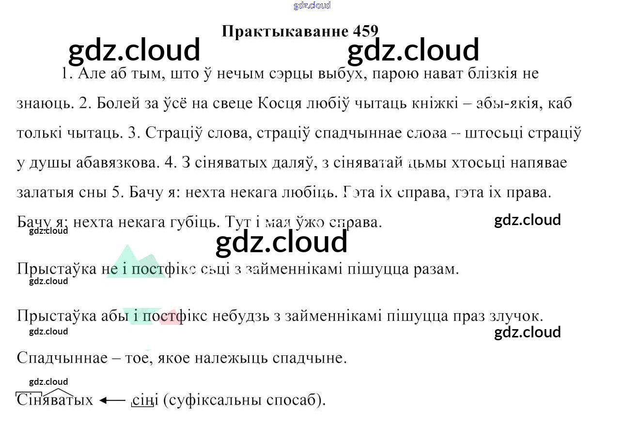 Ответ на задание 459 Учебник Белорусский язык за 6 (шестой) класс Валочка, Зелянко, Мартынкевіч, Якуба, Бажкова 2020