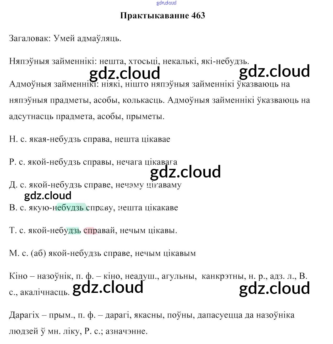 Ответ на задание 463 Учебник Белорусский язык за 6 (шестой) класс Валочка, Зелянко, Мартынкевіч, Якуба, Бажкова 2020
