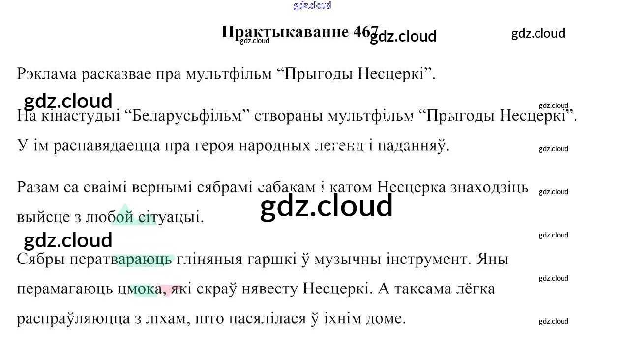 Ответ на задание 467 Учебник Белорусский язык за 6 (шестой) класс Валочка, Зелянко, Мартынкевіч, Якуба, Бажкова 2020