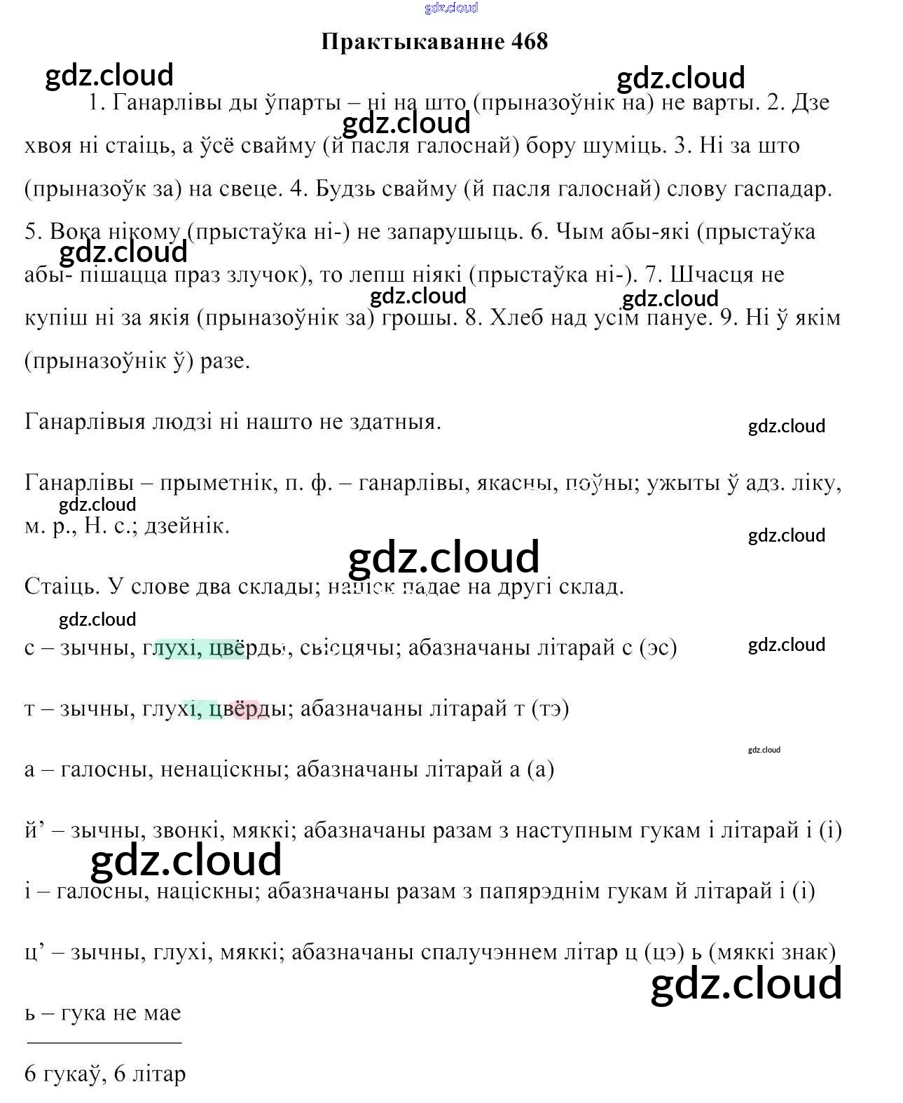 Ответ на задание 468 Учебник Белорусский язык за 6 (шестой) класс Валочка, Зелянко, Мартынкевіч, Якуба, Бажкова 2020
