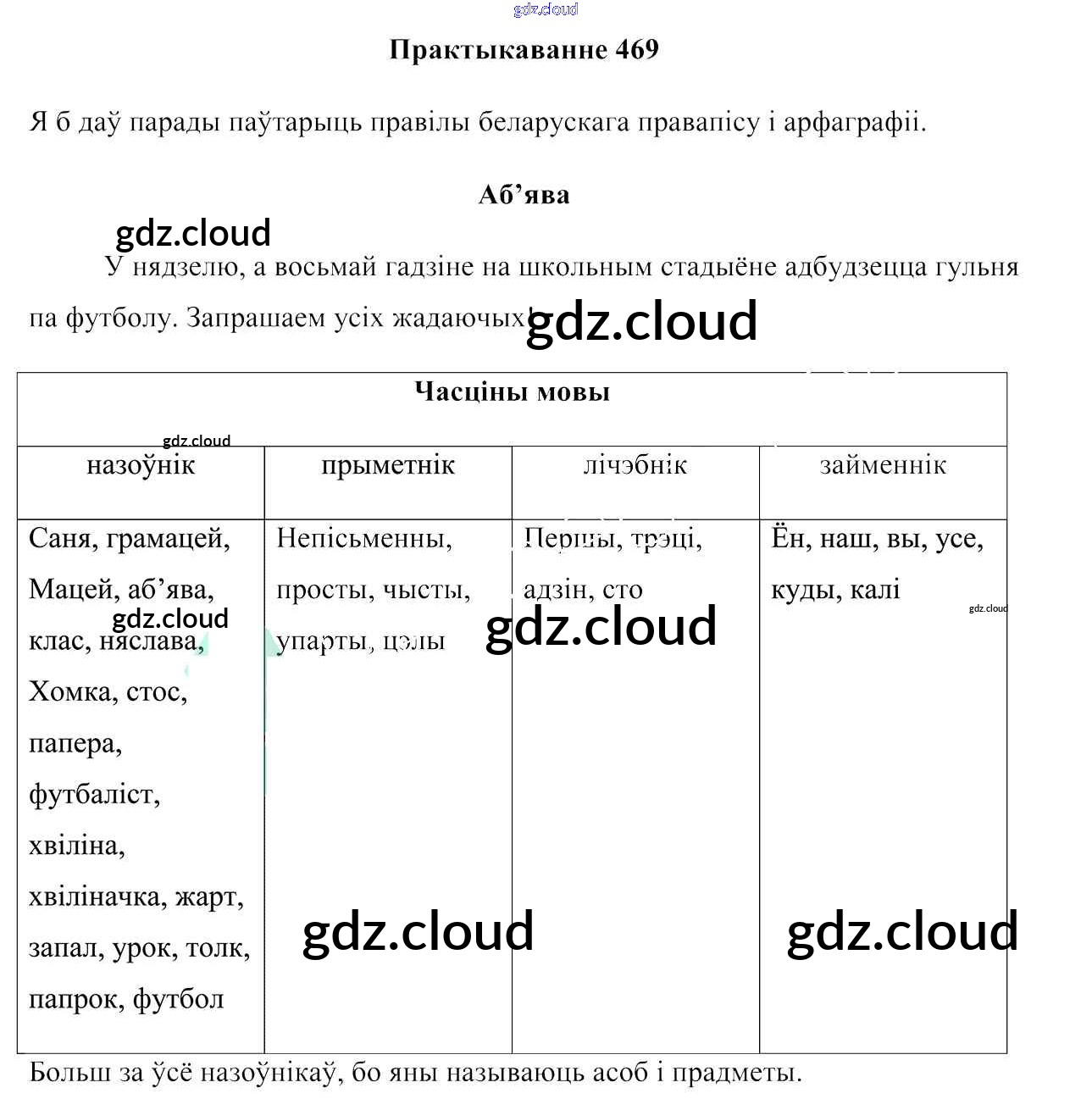 Ответ на задание 469 Учебник Белорусский язык за 6 (шестой) класс Валочка, Зелянко, Мартынкевіч, Якуба, Бажкова 2020