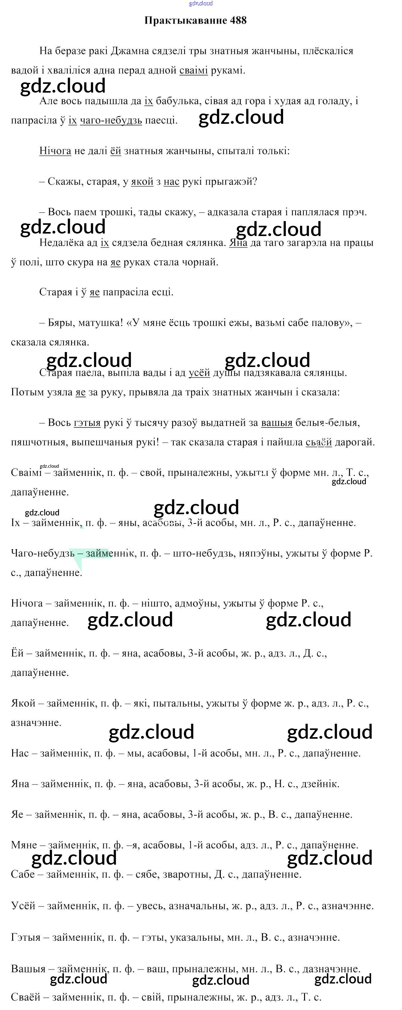 Ответ на задание 488 Учебник Белорусский язык за 6 (шестой) класс Валочка, Зелянко, Мартынкевіч, Якуба, Бажкова 2020