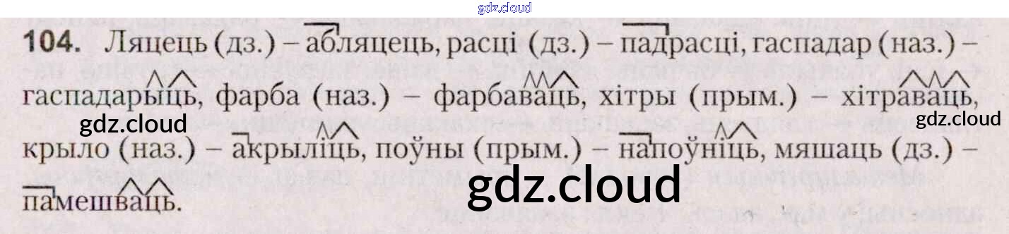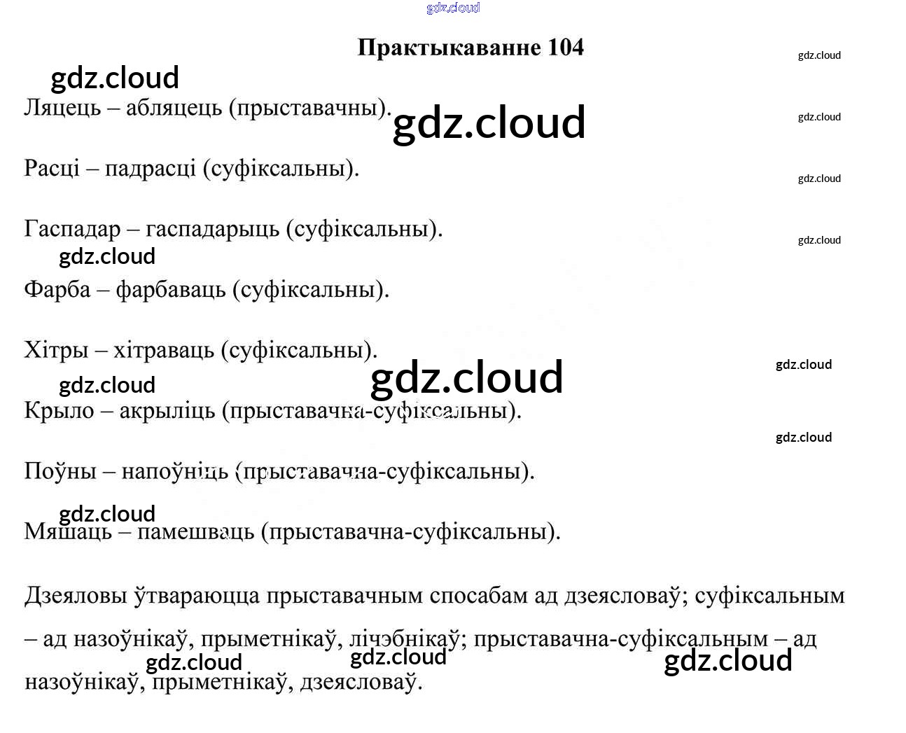 Ответ на задание 104 Учебник Белорусский язык за 7 (седьмой) класс Валочка, Язерская 2020
