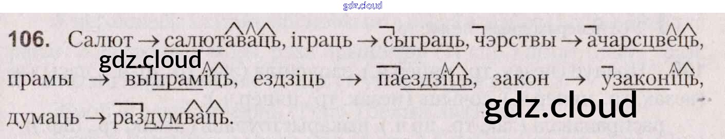 Ответ на задание 106 Учебник Белорусский язык за 7 (седьмой) класс Валочка, Язерская 2020