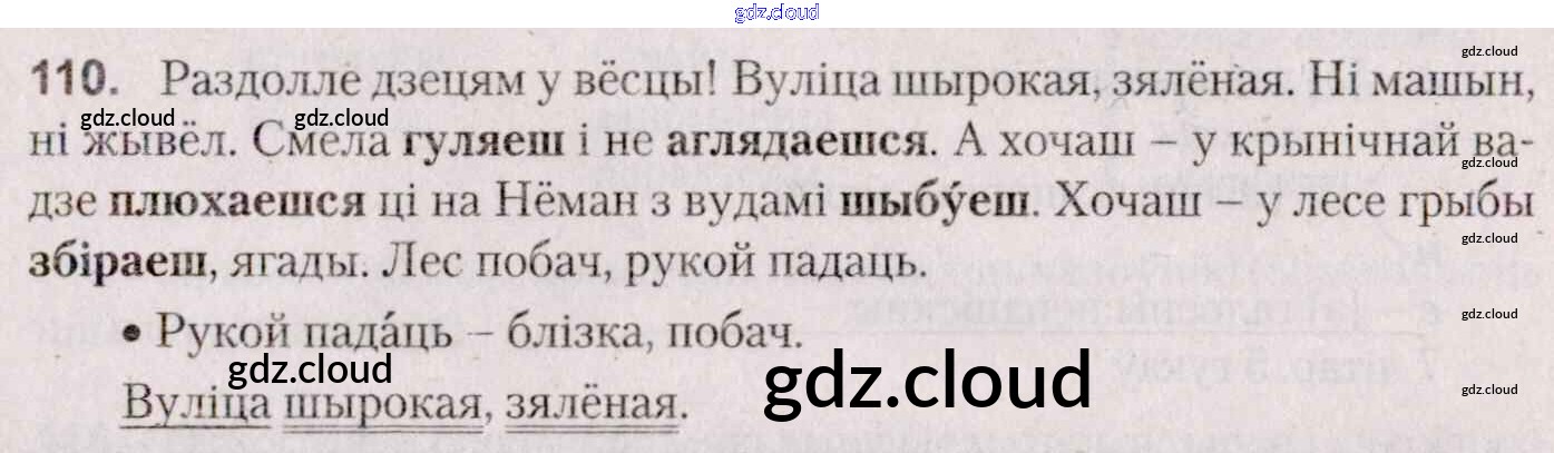 Ответ на задание 110 Учебник Белорусский язык за 7 (седьмой) класс Валочка, Язерская 2020