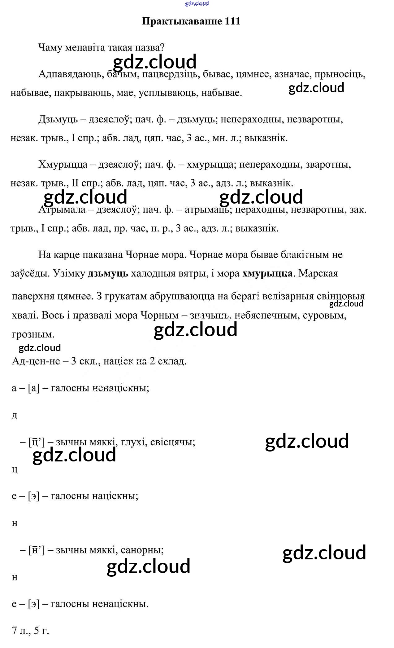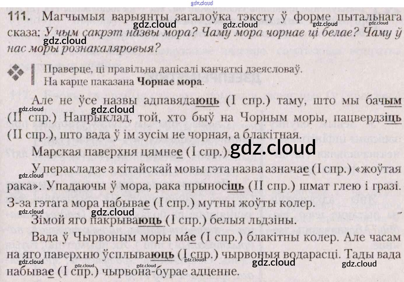 Ответ на задание 111 Учебник Белорусский язык за 7 (седьмой) класс Валочка, Язерская 2020
