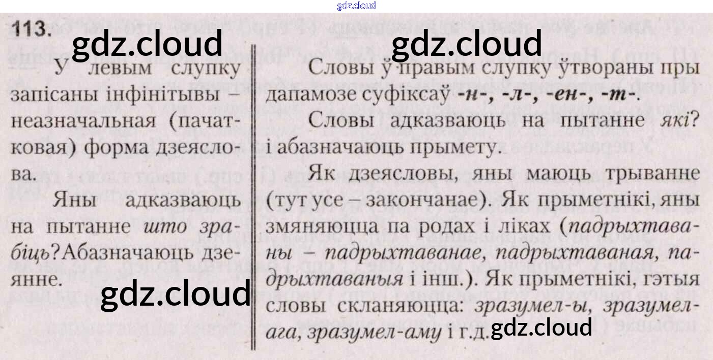 Ответ на задание 113 Учебник Белорусский язык за 7 (седьмой) класс Валочка, Язерская 2020