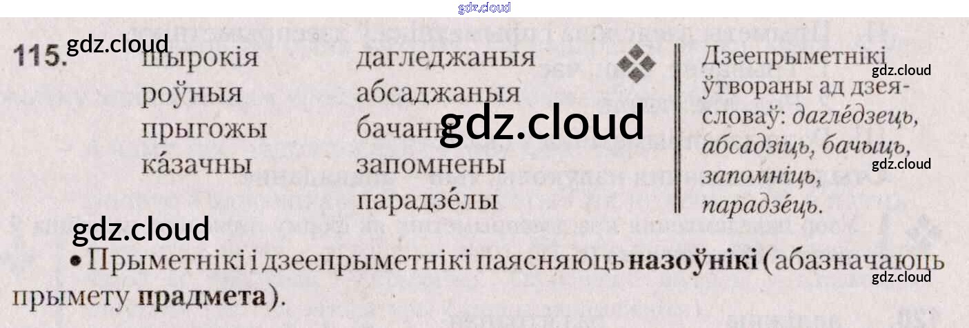 Ответ на задание 115 Учебник Белорусский язык за 7 (седьмой) класс Валочка, Язерская 2020