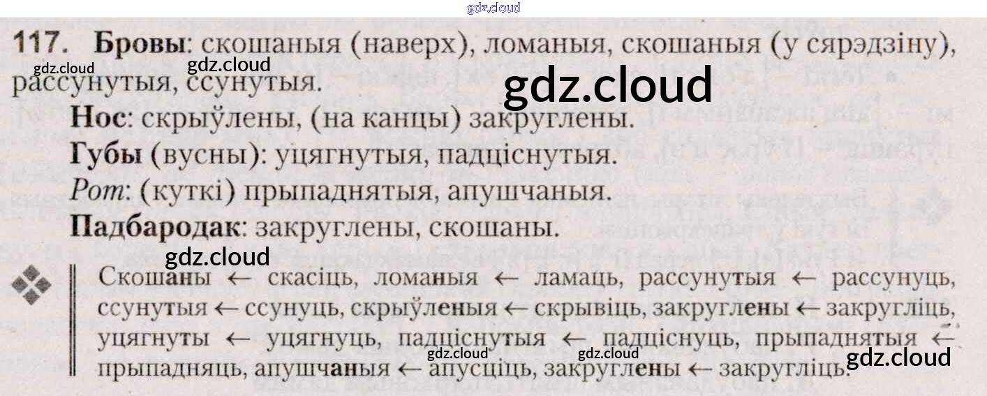 Ответ на задание 117 Учебник Белорусский язык за 7 (седьмой) класс Валочка, Язерская 2020