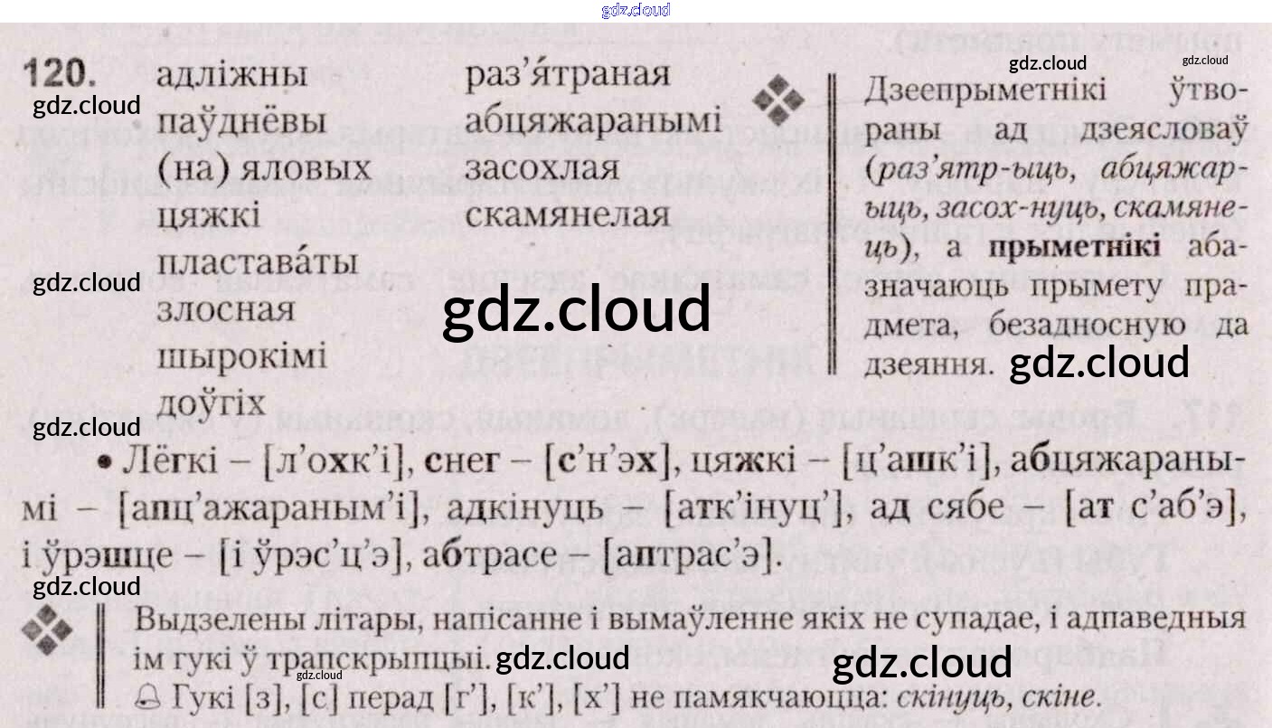 Ответ на задание 120 Учебник Белорусский язык за 7 (седьмой) класс Валочка, Язерская 2020