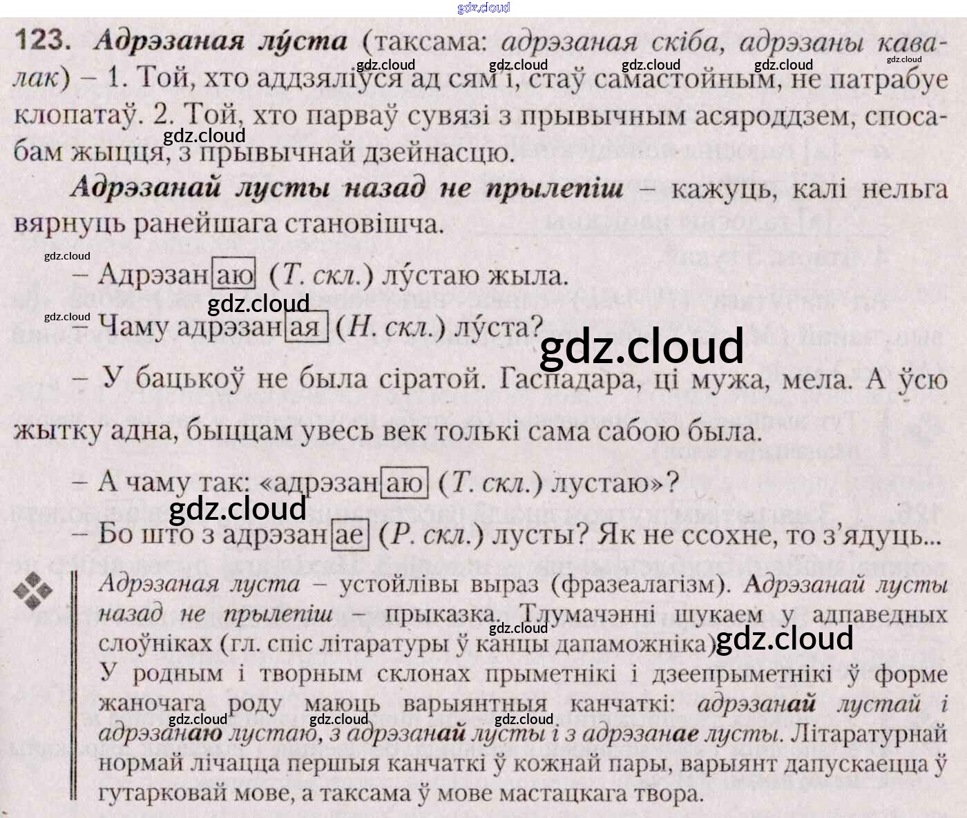 Ответ на задание 123 Учебник Белорусский язык за 7 (седьмой) класс Валочка, Язерская 2020