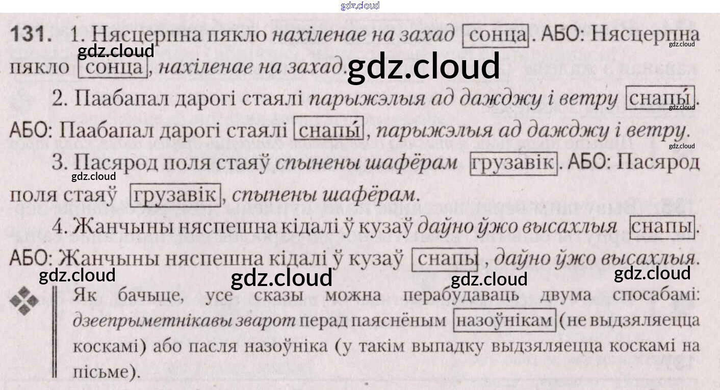 Ответ на задание 131 Учебник Белорусский язык за 7 (седьмой) класс Валочка, Язерская 2020