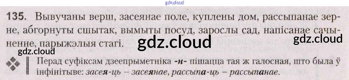 Ответ на задание 135 Учебник Белорусский язык за 7 (седьмой) класс Валочка, Язерская 2020