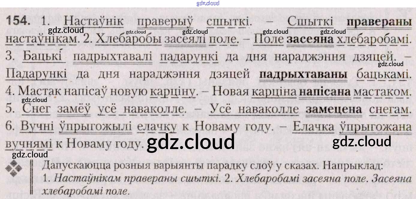 Ответ на задание 154 Учебник Белорусский язык за 7 (седьмой) класс Валочка, Язерская 2020