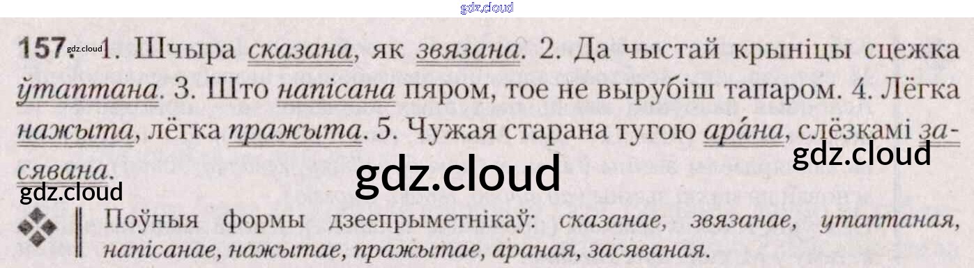 Ответ на задание 157 Учебник Белорусский язык за 7 (седьмой) класс Валочка, Язерская 2020