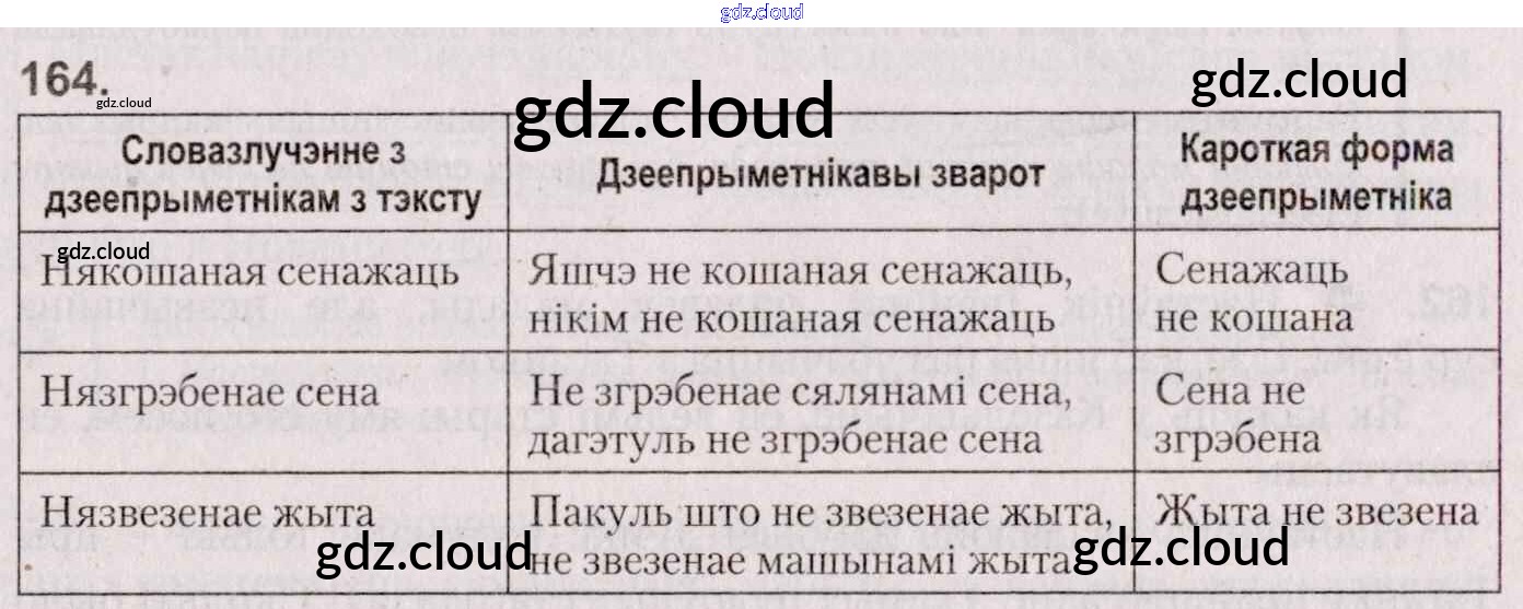 Ответ на задание 164 Учебник Белорусский язык за 7 (седьмой) класс Валочка, Язерская 2020