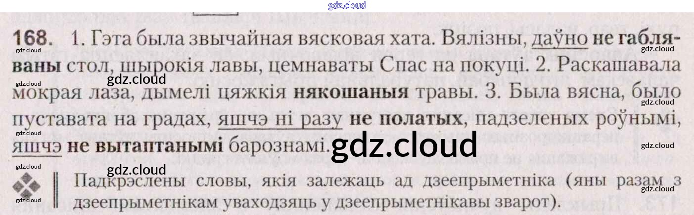 Ответ на задание 168 Учебник Белорусский язык за 7 (седьмой) класс Валочка, Язерская 2020