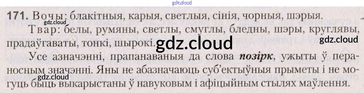 Ответ на задание 171 Учебник Белорусский язык за 7 (седьмой) класс Валочка, Язерская 2020