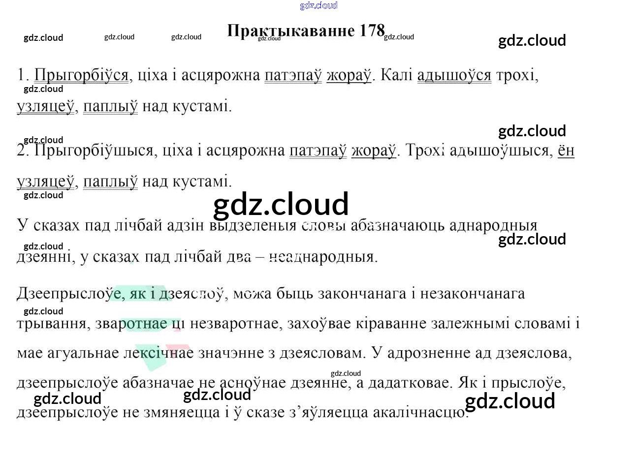 Ответ на задание 178 Учебник Белорусский язык за 7 (седьмой) класс Валочка, Язерская 2020